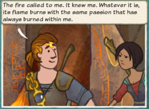 2. "This fire...I'm meant to carry it." <Hero> reaches into the flame.