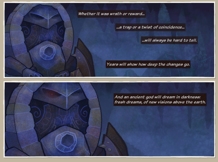 Vulta mentions of an age when the world was less still. It is very vague, one possible theory is that the world wasn't set in stone, open to be influenced by anyone like in the Thrixl world. The Dwemerald in question is shown to look very similar to the Spellshard. In the event it is found out the Spellshard sealed in the immortal soul of Vulta which means they hold considerable power. The Spellshard itself grants +1 potency which powers a lot of abilities, the Weird opportunity event The Scattered Self which plays out inside the hero's soul one of the rewards is also a buff in potency, giving the Spellshard a possible relation to souls.
